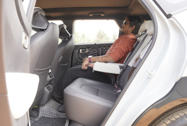 The increase in dimensions isn’t just to make the Seltos look bigger, as you can notice the gains inside as well, especially for the front row, as it feels a bit more roomier than before. The seats too feel nice and plush for long journeys, with the new front seat headrests gaining brownie points as they are nice and wide, and feel comfortable while providing excellent support to the back of one’s head. For the second row, one can easily seat three average-sized individuals as there’s a decent legroom, knee-room and headroom for someone below six feetin height. More importantly, I could sit in relative comfort right behind someone who is six feet tall even though knee-room was at the limit.