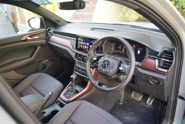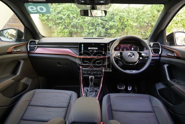 While the exterior has had a fair amount of updates, the cabin is a very familiar sight albeit with a dual-tone shade, and the Monte Carlo variants getting a deeper terracotta shade of red. Not that it’s a bad thing as the 2026 Škoda Kushaq remains ergonomically sorted, but it would’ve been nice to have physical HVAC controls rather than the current touch-sensitive units.