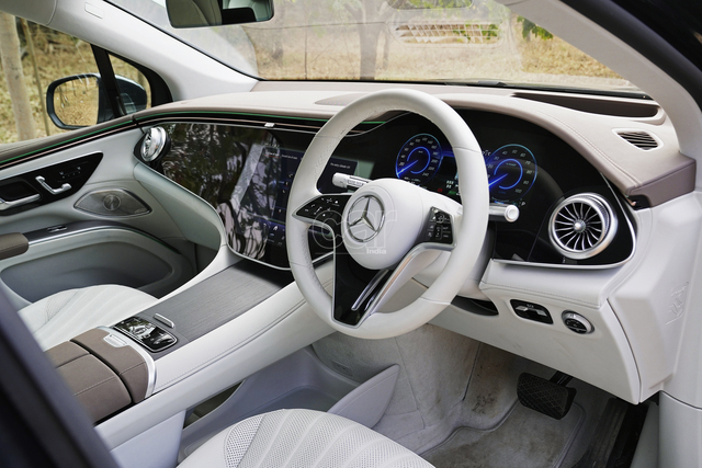 The EQS SUV has one motor at either end which gives this car the ability to use all-wheel drive when needed. They draw power from a huge 122-kWh battery which promises a tension-free range of 809 kilometres. From our driving experience, we feel one may expect at least 600 km. Combined power and torque figures are 544 hp and 858 Nm respectively which are adequate to propel this 2.8-tonne behemoth from 0 to 100 km/h in 4.7 seconds. In the real world, what impressed us was the way this giant delivers that power. The cabin is incredibly refined and can be described as a sanctuary. So, it was always surprising to note that I was travelling a lot faster than I would have guessed. In Comfort mode, the chauffeur should have no trouble at all in transporting their employer around in supreme comfort and should the employer want to sample the electric power, then Sport is reasonably feisty.