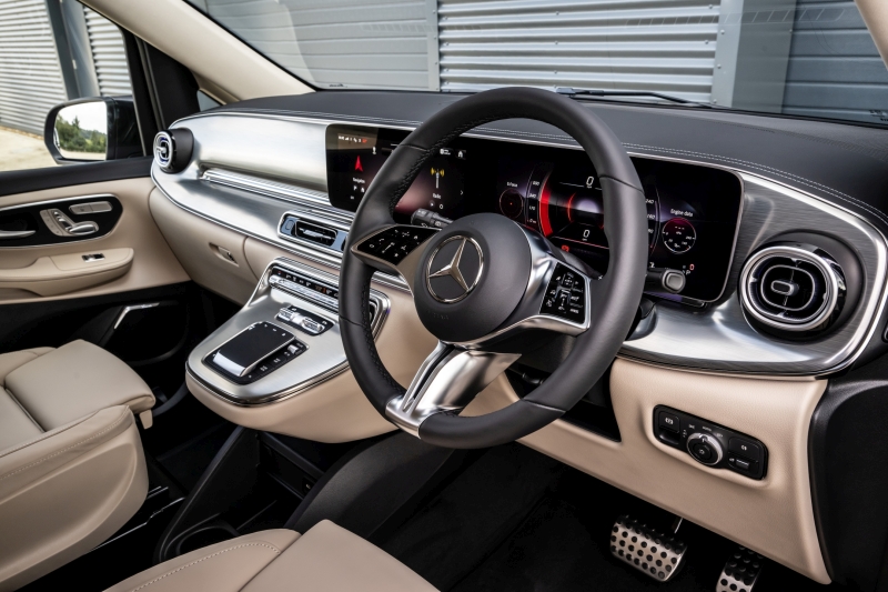 First time with engine choices: Mercedes-Benz India will offer the V 300 petrol and the V 300 d diesel, both of which use 2.0-litre, four-cylinder, turbocharged direct injection engines. The V 300 is a 48-volt mild-hybrid 1,999-cc unit and produces 231 hp and 370 Nm. The V 300 d is the “OM654” high-pressure common-rail diesel with a heftier 237 hp and 500 Nm. Both use the 9G-Tronic nine-speed automatic transmission that drives the rear wheels.
