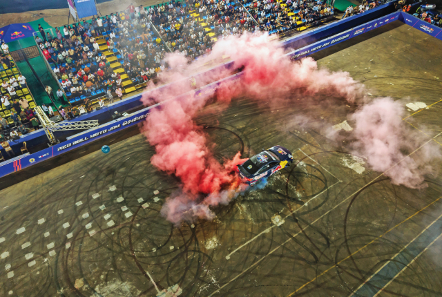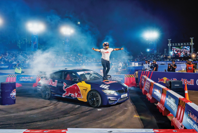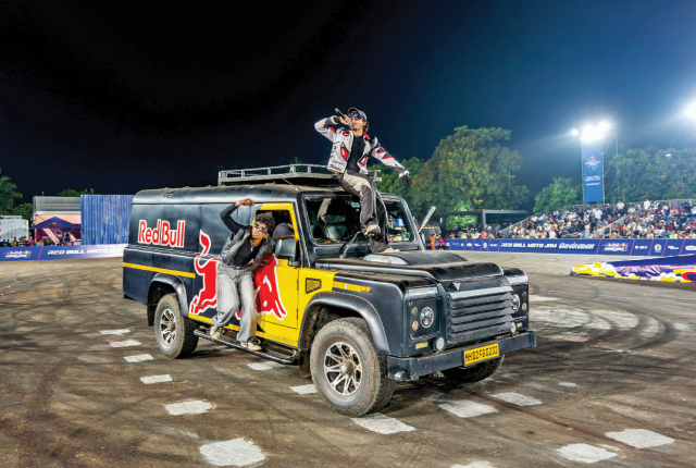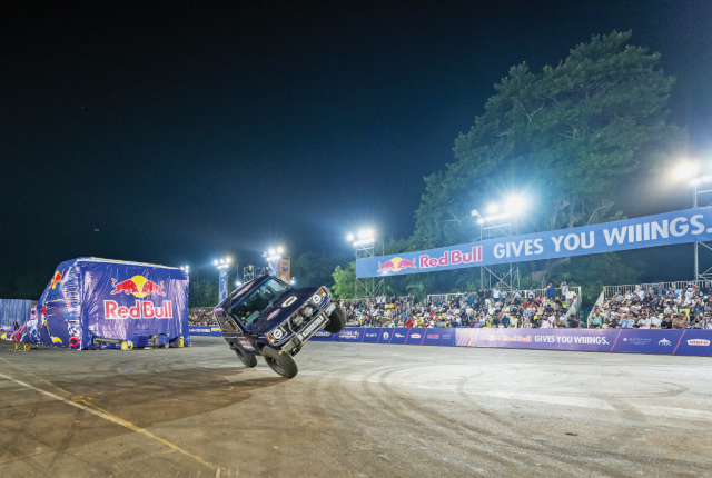 Before all the crazy action kicked off, the packed crowd was greeted with the athletes dressed in traditional Chennai attire and onboard a rickshaw. Red Bull didn’t hold things back for the opening act as we had Adulrahman Ahmed Alraeesi behind the wheel of a tricked-out Jeep, pulling off two-wheel sideways driving. Essentially one could consider it an SUV handstand. It wasn’t just at one angle as he pulled it off at different speeds and even had his SUV at a standstill on two wheels.