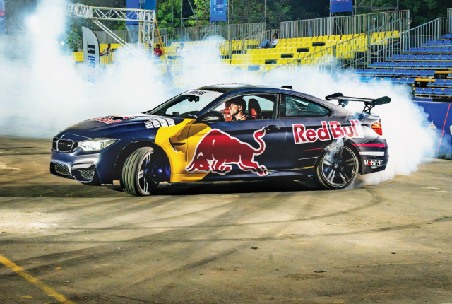 Next up we had none other than Abdo Feghali, the Guinness World Record holder for the longest drift (11.18 kilometres), gracing the venue with incredible precision drifts piloting a BMW M4. Highlights included an incredible J-turn that doubled as a parking tactic in style. Of course, this was no ordinary BMW M4; the car has been remapped to put out 650 hp, installing a hydraulic handbrake to help him lock the rear tyres to initiate a drift or change direction and, of course, a custom exhaust and the rear wing set-up to give it more of an aggressive personality.