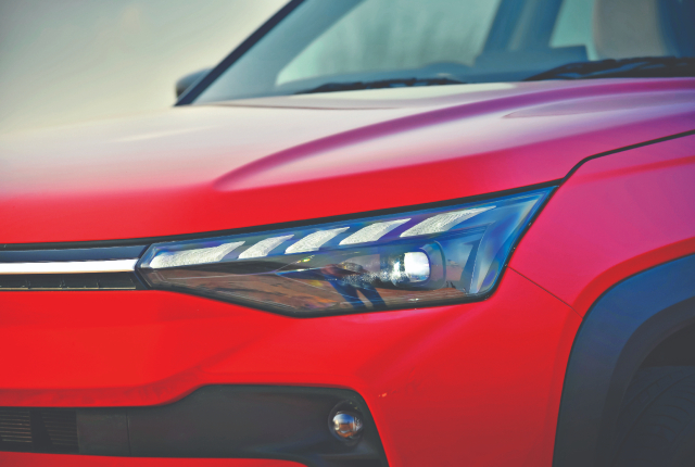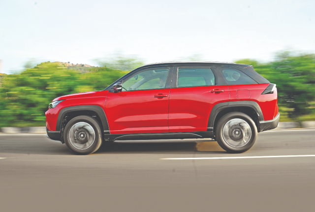 A strong first impression matters, and the Maruti Suzuki Victoris does just that. Being the flagship of the Arena range, it looks the part: a butch stance, yet with a balance of the sleek and the modern. Highlights include a fairly upright nose and a nicely sculpted front bumper, with aggressive LED projector headlamps and LED daytime running lights (DRL) with unique separations above it. The overall silhouette gets strong character lines, squared-off wheel-arches, thick cladding, and a sloping roofl ine, thus adding some proper SUV muscle. This is complemented by snazzy 17-inch alloy wheels with the connected LED tail-lamp strip giving a nice sense of width. Overall, it makes for a well-balanced design that doesn’t need to try hard to stand out.