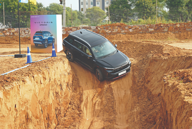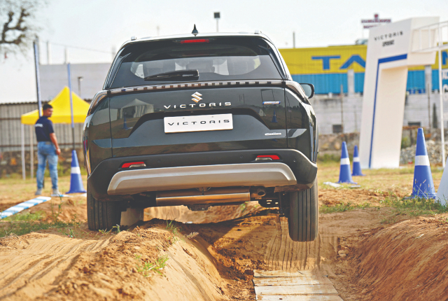 There are four driving modes with the AllGrip Select: Auto, Sport, Snow, and Lock. We had a perfect opportunity to truly experience the AllGrip all-wheel drive at its best in a specially curated off-road experience zone. It had all the fundamental challenges for an all-wheel-drive 8 CAR INDIA January 2026 www.carindia.in SUV, such as a rock bed, a pothole section, a tipover section with a 28-degree section that is not for the faint-hearted, an articulation section, and challenging side inclines. The Victoris felt almost effortless while tackling all these hurdles, especially around the tipover section, where there was no hint of flexing, and, with the Snow terrain mode, slippage was minimal while climbing the low grip surface. The Lock mode gave a near 50:50 power distribution ratio, which proved helpful in tackling the side inclines. Overall, the Maruti Suzuki Victoris with its all-wheel-drive technology offers great off-road capabilities while still being able to maintain a stable and reliable on-road performance. An all-wheel-drive option also gives the Victoris a further leg up in a segment where most SUVs have front-wheel-drive powertrains.